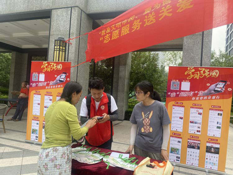 在志愿者的引导下积极参与互动,通过平台收看时政新闻、播放红色电影、听京剧、挑战答题等,还了解了积分兑换奖品的功能,居民们纷纷表示学习强国越了解越觉得这是一个“宝藏”APP。