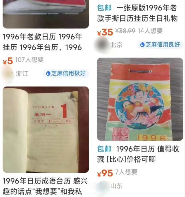 1996年旧日历火了,背后有个时隔28年的“巧合”!值得买吗? 2024年与1996年的公历分布完全相同,这种“巧合”带火了1996年的日历,拆开销售的单页售价竟卖到了30元至50元。对此,天文专家解释:一般情况下,闰年公历28年会重合一次。“现在的时光和过去仿佛产生了某种联系,这感觉挺奇妙……”2024年和1996年同是闰年,巧的是这两年元旦还都是星期一,这意味着今年的公历跟1996年完全一样,这一巧合也引发了大家的讨论。奇妙的时间“重合”也引发了一股购买1996年日历的热潮。北京民俗学会会长、民俗文化专家高巍分析,对1996年感兴趣的人至少已经奔三,对于他们而言,当年可能正处于成长的难忘时期,买旧日历也是怀念过去的一种方式。
