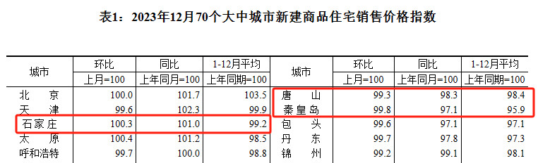 石家庄新房价格涨了 国家统计局1月17日发布,2023年12月70个大中城市中,7个城市新房价格环比上涨、20个城市同比上涨,其中石家庄新房价格环比上涨0.3%,唐山、秦皇岛均下跌;70城二手房价格环比全线下行,同比仅成都上涨0.5%。58安居客研究院院长张波分析认为,由于岁末年初的楼市热度都相对较低,预计要等到龙年开春,市场才会逐步迎来反转。