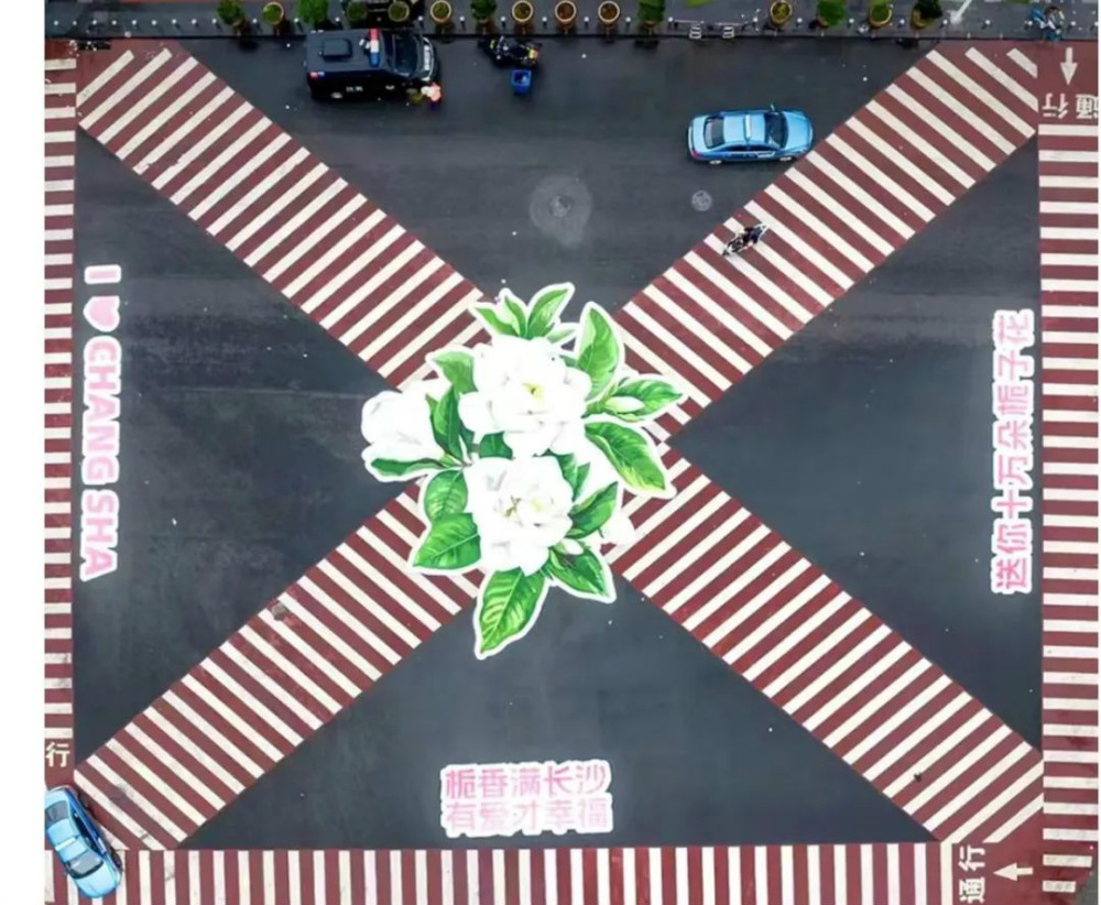 长沙网红斑马线“长”出了栀子花! 浪漫长沙又放大招了。一朵巨大的栀子花“盛开”在长沙的人气C位——网红斑马线上,引发刷屏……不少网友感慨,夏日氛围瞬间溢出屏幕,长沙,你是懂浪漫的!