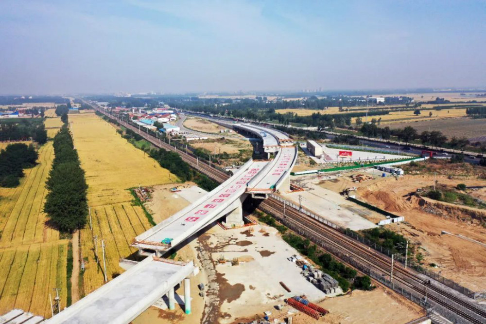 国道G307晋州绕城段改建工程跨石德铁路2号转体桥5月28日成功转体。该转体桥小曲线半径600米、最大跨度140米,为我省小曲线半径、跨度最大公路转体桥。该桥的成功转体,为国道G307晋州绕城段今年10月建成通车奠定了坚实基础。