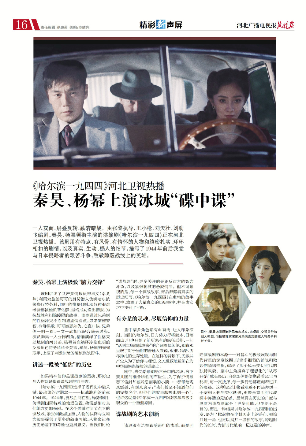 一人双面、层叠反转、跌宕暗战。由张黎执导,王小枪、刘天壮、刘劲飞编剧,秦昊、杨幂领衔主演的谍战剧《哈尔滨一九四四》正在河北卫视热播。该剧用有特点、有风骨、有情怀的人物和缜密扎实、环环相扣的剧情,以及真实、生动、感人的细节,描写了1944年前后我党与日本侵略者的艰苦斗争,致敬隐蔽战线上的英雄。