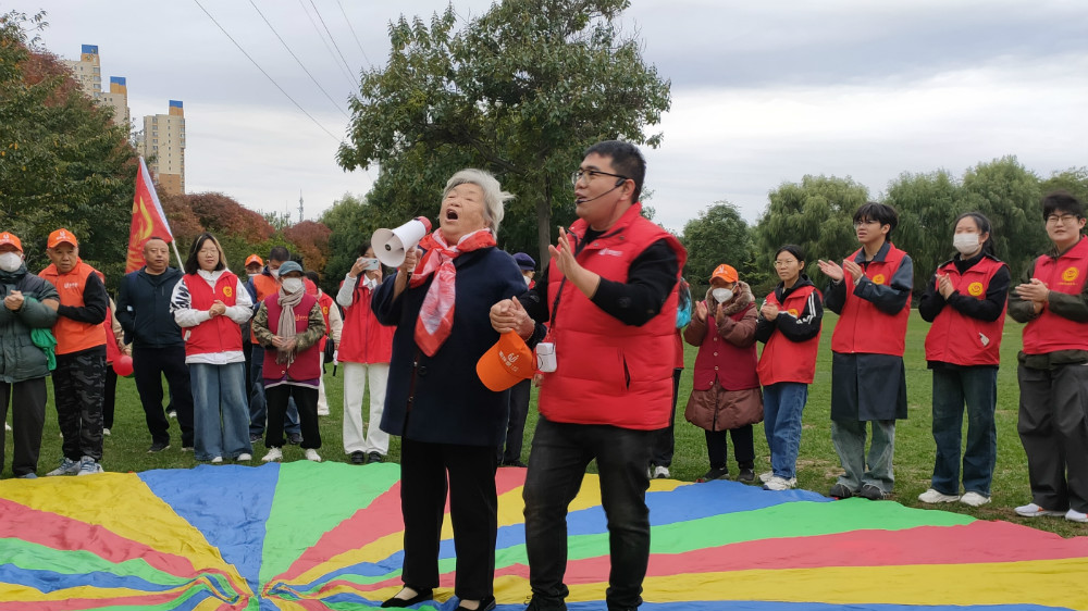 秋风轻拂,带来无限欢乐与温馨。公园里,身着红色马甲的志愿者显得格外醒目,他们面带微笑,眼神中充满了温柔与关怀。开阔的草坪上,志愿者与老人们放声歌唱,并进行了一系列的游戏,既有传统的猜谜语,也有创新的团队协作游戏。