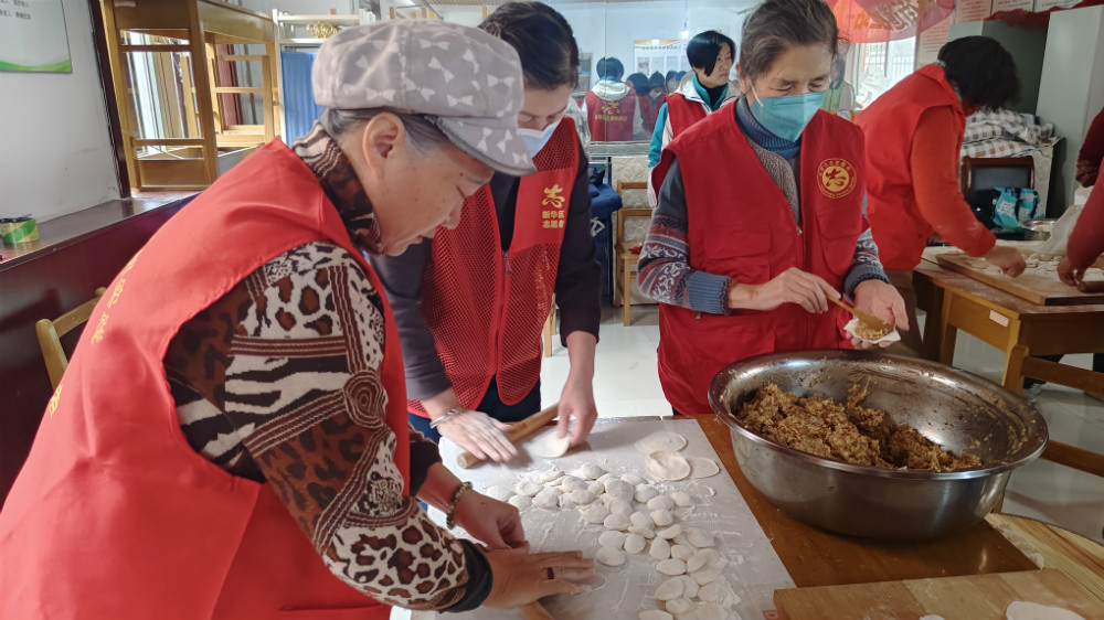 红色社区社会组织成员、志愿者、党员、居民代表早早聚集在活动现场,有的还自带了擀面杖、砧板等厨具,他们各司其职,整个活动有条不紊,一双双灵巧的双手把浓浓的冬至情包进了圆鼓鼓的饺子里。