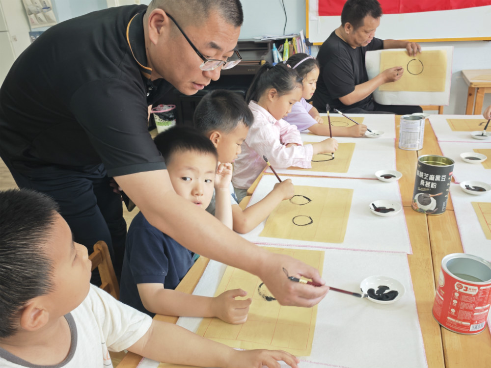 老师们凭借其深厚的艺术造诣和生动有趣的教学方法,迅速吸引了孩子们的注意力。他们通过展示简单可爱的绘画作品,引导孩子们观察生活中的美好事物,激发他们的创作灵感。同时,老师们耐心地讲解毛笔的握笔姿势、基本笔画和书写规范,让孩子们在亲身体验中感受书画艺术的独特韵味。孩子们在老师的指导下,认真聆听、积极尝试,展现出了对书画艺术的浓厚兴趣。