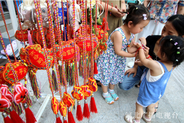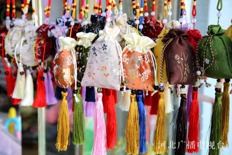 端午节临近,河北省邯郸市广平县民间手工艺人制作了清香四溢的五彩香包,供人们选购佩戴。香包内装入艾草、雄黄、朱砂、薄荷等中草药材料,散发出阵阵清香,可安神驱蚊祛暑,也寄托着人们祈盼吉祥如意的幸福愿望,畅俏端午市场。