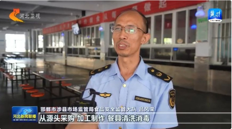 邯郸市涉县市场监管局食品安全监管大队 吕风荣:从源头采购、加工制作、餐具清洗消毒、食品留样等开展全流程监管。(河北新闻联播)