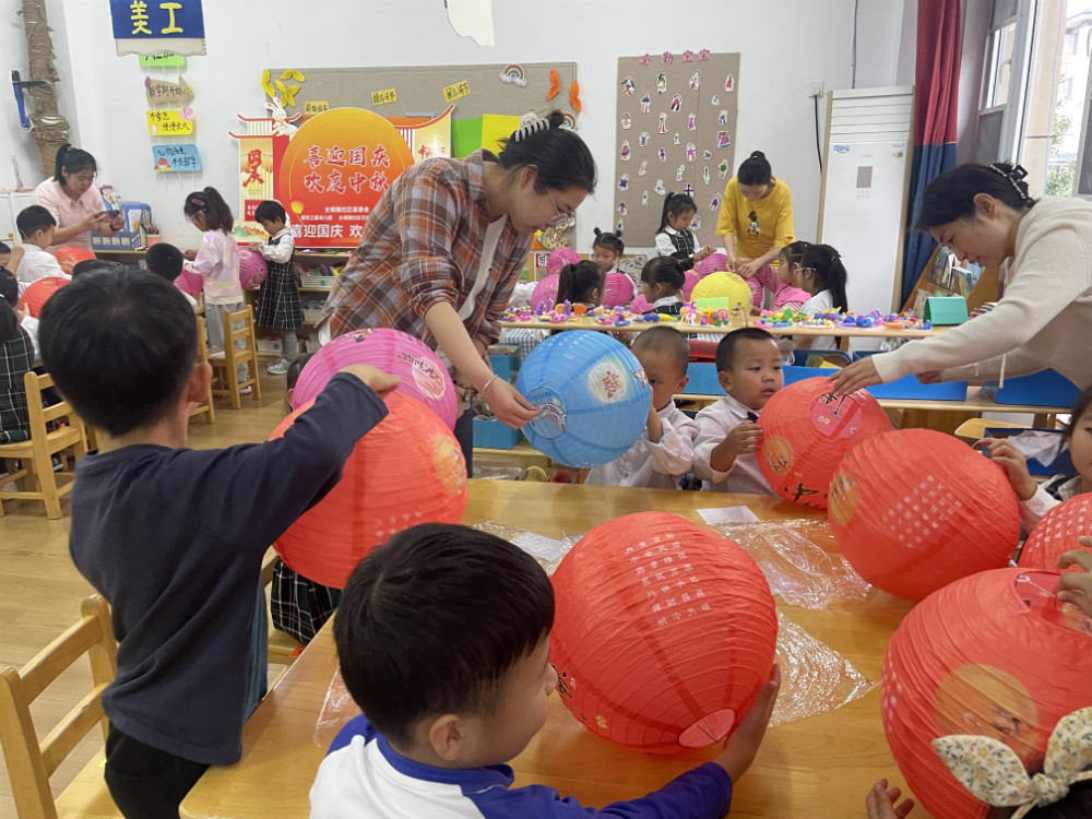中秋活动现场组的孩子们进行了手工灯笼的制作,首先老师向孩子们介绍了灯笼的历史渊源和文化寓意,从古代照明的工具到象征团圆、喜庆的节日符号。孩子们迫不及待地动手操作起来。折叠、拼接、粘贴、装灯……一双双小手忙得不亦乐乎。不一会儿,一个个造型别致、色彩斑斓的灯笼在孩子们的巧手中逐渐成型,孩子们用稚嫩的小手在卡片上写上对祖国、节日的祝福。