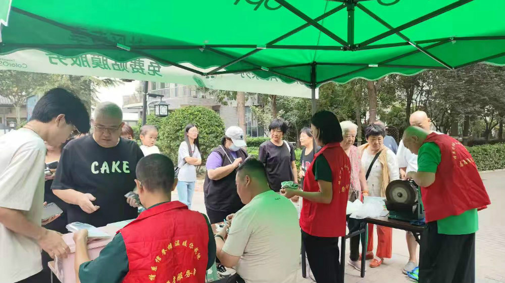 志愿者们热情周到,手中的活儿细致又熟练:磨好的菜刀恢复锋利,贴好的手机膜平整服帖,擦净的眼镜清晰透亮,视力筛查更是耐心细致。这样便捷又贴心的服务,精准戳中居民日常需求,引得大家赞不绝口。