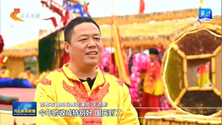 邯郸市曲周县舞龙演员 王志彬:今年的收成特别好,国庆到了,俺们大家伙儿就凑到一块儿舞龙灯庆丰收,希望咱老百姓的日子越过越红火,祖国越来越强大。