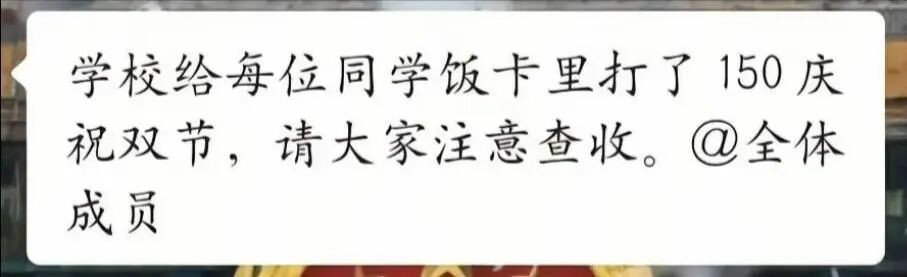 高校“低调”发放过节费,为何让人特别惊喜 国庆节前一天,安徽师范大学的学生们不但吃到了学校送的月饼,校园卡里还多了150元的“临时生活补贴”。据媒体报道,10月1日上午校方工作人员介绍,确实给数万名学生每人发放了150元钱。发放150元过节费且未提前通知,学生自查余额才发现到账,这种“闷声宠学生”的操作瞬间得到很多点赞。“突然的惊喜最动人”,学生确实感受到被重视的温暖。150元的过节费,从数额上来说不算特别大,但这份心意却足以证明,“以人为本”的教育理念从来不只是口号。