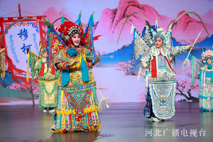 节目以一曲充满戏曲张力和青春气息的《大戏山水间》拉开序幕。随后,秦腔《嫦娥奔月》、京剧《贵妃醉酒》等戏曲选段让观众沉浸在浓郁的中秋氛围之中。创意环节《诗意中秋》融戏入诗,5位不同剧种演员分别饰演张九龄、杜甫、李清照、孙谔、苏轼,以韵白吟诵“海上生明月,天涯共此时”等千古名句,配合美丽河北实景画面,营造出诗戏相融的沉浸场景。黄梅戏名家吴琼献上《太白醉》选段,以黄梅调再现诗仙李白的洒脱奔放。“百戏齐唱杨家将”以杨家将故事串联多地剧种,粤剧《穆桂英招亲》、河北梆子《辕门斩子》、京剧《穆桂英挂帅》、豫剧《五世请缨》等戏曲选段齐亮相,唱念做打中自有忠孝节义,情感交织里尽显家国情怀。