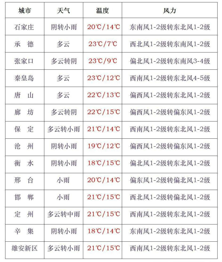 回程路上降温降雨 今天(10月7日)白天,石家庄南部、衡水南部、邢台、邯郸阴有小雨,局地有中雨,其他地区阴转多云。石家庄阴转小雨,14~20°C;雄安新区多云转小雨,15~21°C;北京多云,11~22°C。10月5日起,北方多地最高气温累计降幅将达到10℃左右,6日以及8日至10日,北方气温将会大面积创立秋后新低,北京、天津、石家庄、哈尔滨、沈阳等地最高气温将只有10℃出头。今天夜间到8日,全省阴,大部分地区有小雨,其中张家口、承德西部、保定、雄安新区、廊坊南部、石家庄、沧州西部、衡水西部有中到大雨,个别地点有暴雨。