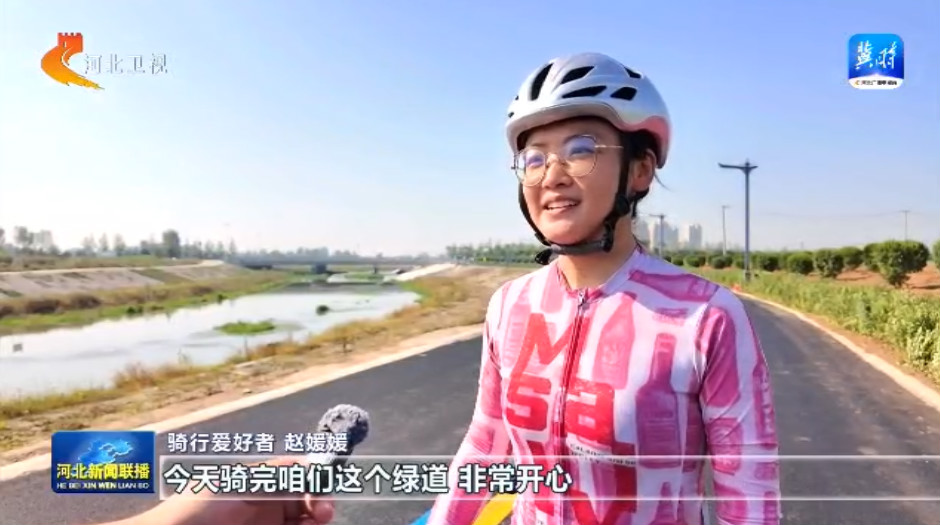 骑行爱好者 赵媛媛:今天骑完咱们这个绿道,非常开心,两边绿树成荫,风景特别好,道路也非常平整。