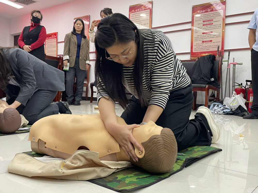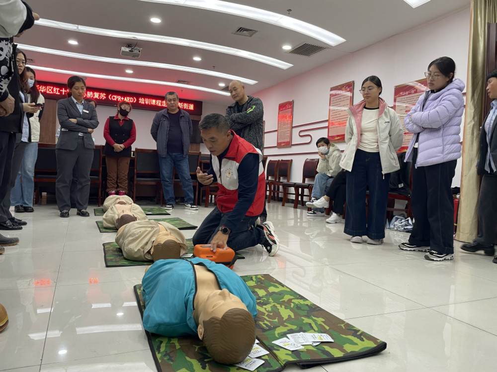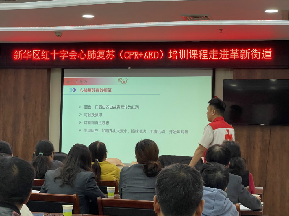 本次培训得到了革新街道办事处的大力支持,来自街道社区卫生服务中心、市委西院社区鹿诚苑物业及街道、社区的工作人员共同参加。培训课程围绕心肺复苏术的基本原理、操作步骤、注意事项等核心内容展开,通过理论讲解与现场演示相结合的方式,让学员们系统掌握急救知识。