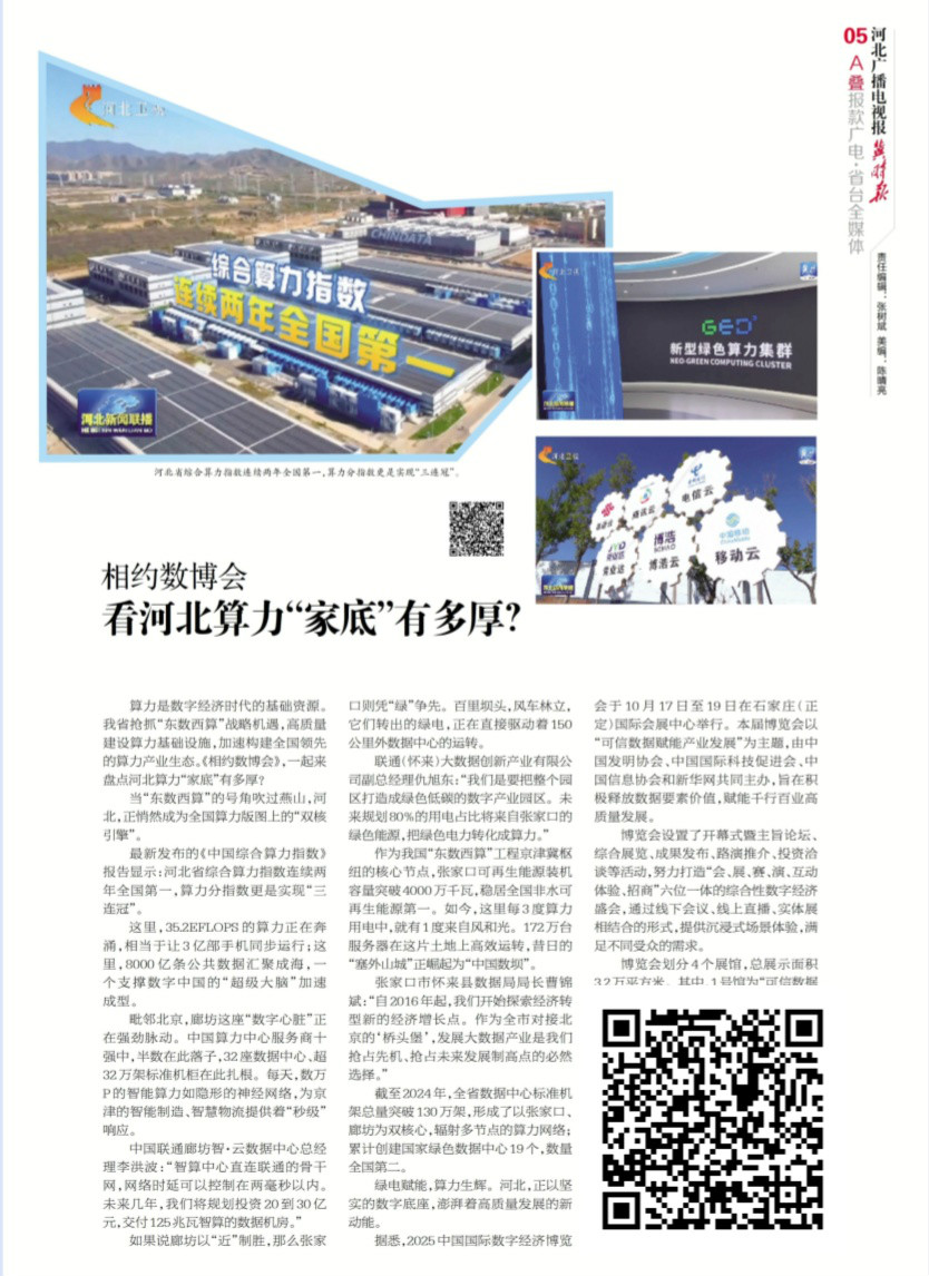 相约数博会——看河北算力“家底”有多厚? 算力是数字经济时代的基础资源。我省抢抓“东数西算”战略机遇,高质量建设算力基础设施,加速构建全国领先的算力产业生态。《相约数博会》,一起来盘点河北算力“家底”有多厚(识别图片上的二维码关注阅览)。