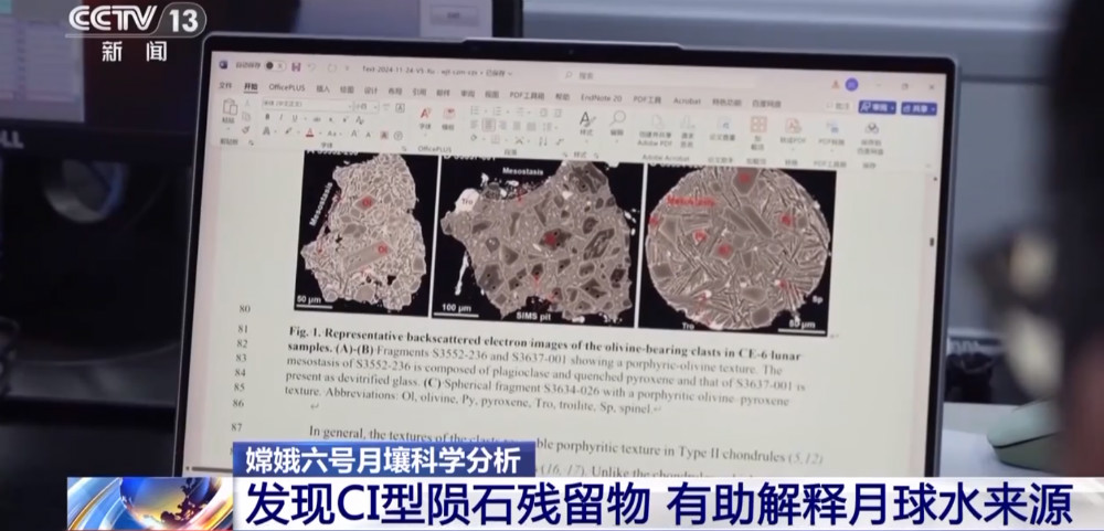 月球水从哪里来?嫦娥六号月壤样品获重大发现 我国科学家在对嫦娥六号2克月壤样品的科学分析中,识别出来自CI型碳质球粒陨石的撞击残留物,而此前在月球样品中检测到的具有正氧同位素特征的水,很可能来自这类陨石撞击。这一成果于21日凌晨发表于国际学术期刊《美国国家科学院院刊》。