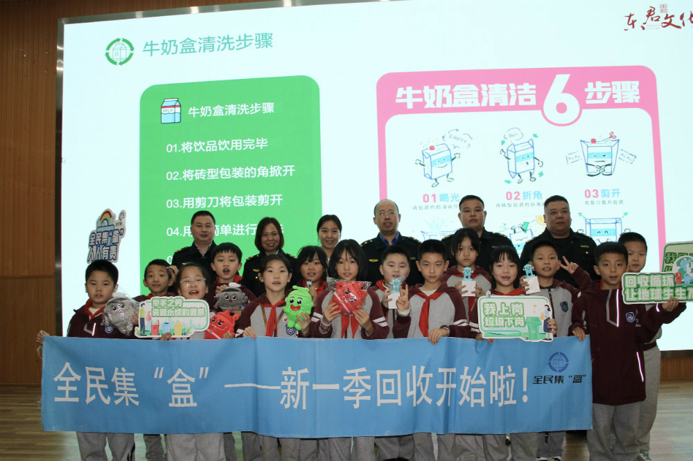 为在青少年中培养绿色发展理念,提升资源再利用意识,石家庄市新华区赵佗路街道联合新华区城市管理综合行政执法局,在阳光未来小学举办“全民集‘盒’ 人人有责”垃圾分类宣传活动。