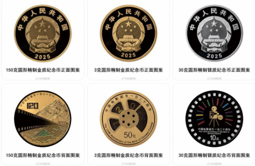中国电影120周年金银纪念币将发行 中国人民银行定于11月11日发行中国电影诞生120周年金银纪念币一套。该套金银纪念币共3枚,其中金质纪念币2枚,银质纪念币1枚,均为中华人民共和国法定货币。