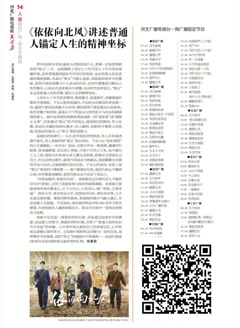 GDB评论|《依依向北风》:讲述普通人锚定人生的精神坐标 该剧不仅仅是一部简单的怀旧剧,而是通过知青岁月的磨砺、创业路上的坚守、情感世界的纠葛,回答了“普通人如何在时代中自处”的命题。让中老年观众看到自己的青春记忆,让年轻观众读懂父辈的坚守。正如剧中那阵吹过田野与厂房的北风,虽带着岁月的寒意,却因“情义”的温暖而不再凛冽——这或许就是《依依向北风》留给观众最珍贵的礼物(识别图片上的二维码关注阅览)。