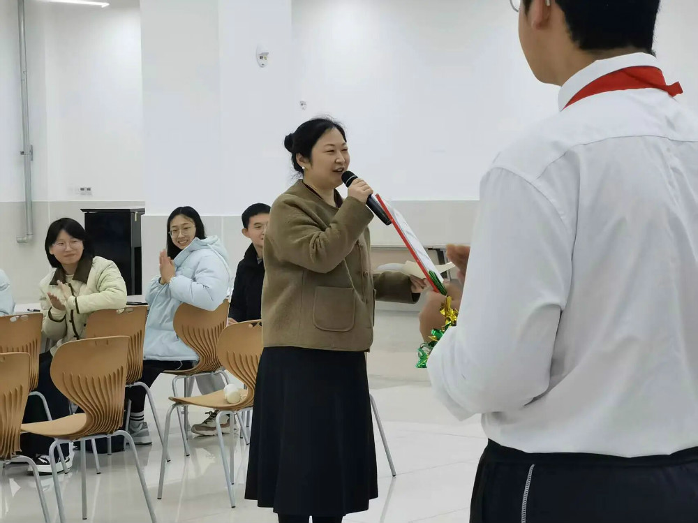 杨昱副校长也与同学们亲切交流,她鼓励大家将比赛中展现的团结拼搏精神延续到学习生活中,以更昂扬的姿态追逐梦想。