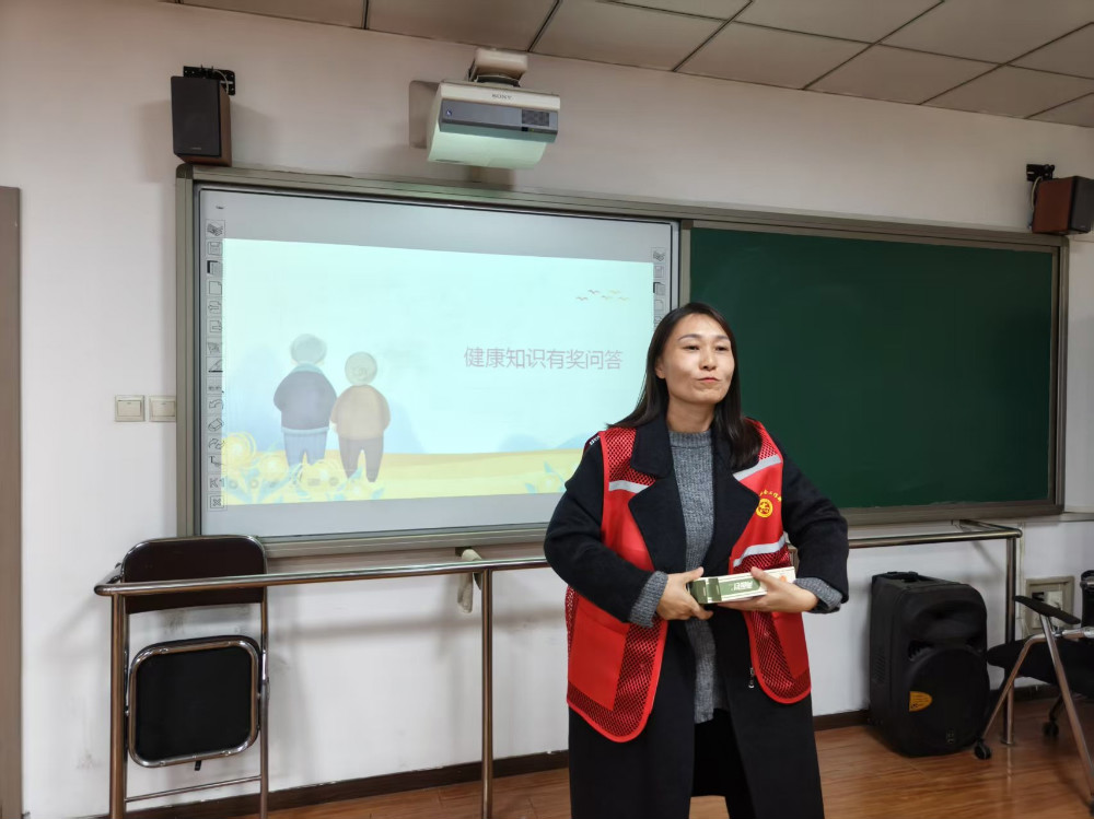 讲堂结束后,互动养生工坊随即开启。在暖心足浴包 DIY 区,志愿者们提前准备好艾草、红花、生姜等中药材,手把手协助老人们挑选、搭配食材,制作专属足浴包。“艾草能驱寒,红花能活血,冬天用这个泡脚肯定舒服!” 张阿姨一边制作,一边和身边的老姐妹分享心得。同时,冬季养生知识问答环节热闹非凡,老人们围绕讲堂内容积极抢答,答对者获得牙膏、护手霜等小礼品,在欢乐互动中巩固了养生知识,现场氛围推向高潮。