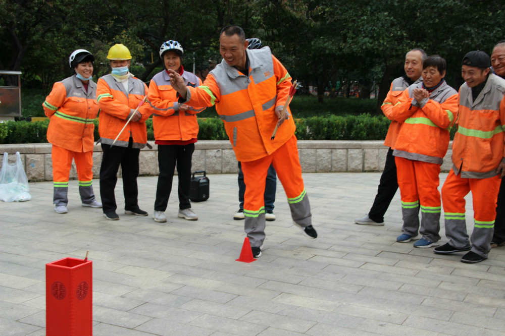 运动会精心设计了多个富有趣味性和团队协作性的比赛项目。参赛的14名环卫工人分为“先锋队”与“模范队”,在欢乐套圈、趣味投壶和乒乓球颠球折返接力等环节中展开友好竞技。赛场上,队员们全神贯注、默契配合;赛场边,加油声、欢笑声此起彼伏,构成一幅动人的社区温情画卷。