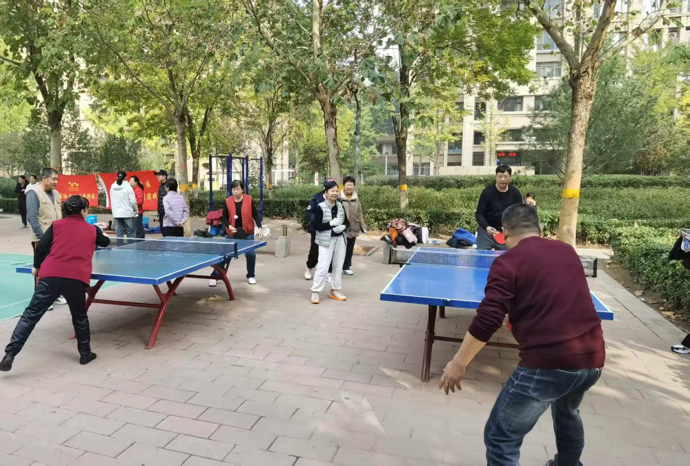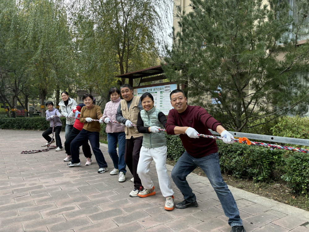 活动伊始,主持人明确宣读比赛项目、规则及注意事项,随着哨声响起,比赛正式拉开帷幕,居民们迅速投入各项目角逐。乒乓球台与羽毛球场上,选手们激烈对战,白色小球穿梭其间,扣杀与搓球交替上演,围观喝彩声此起彼伏;拔河与两人三足比赛则更显凝心聚力,场上气氛紧张热烈,场下欢呼声不断,现场满是欢乐氛围。