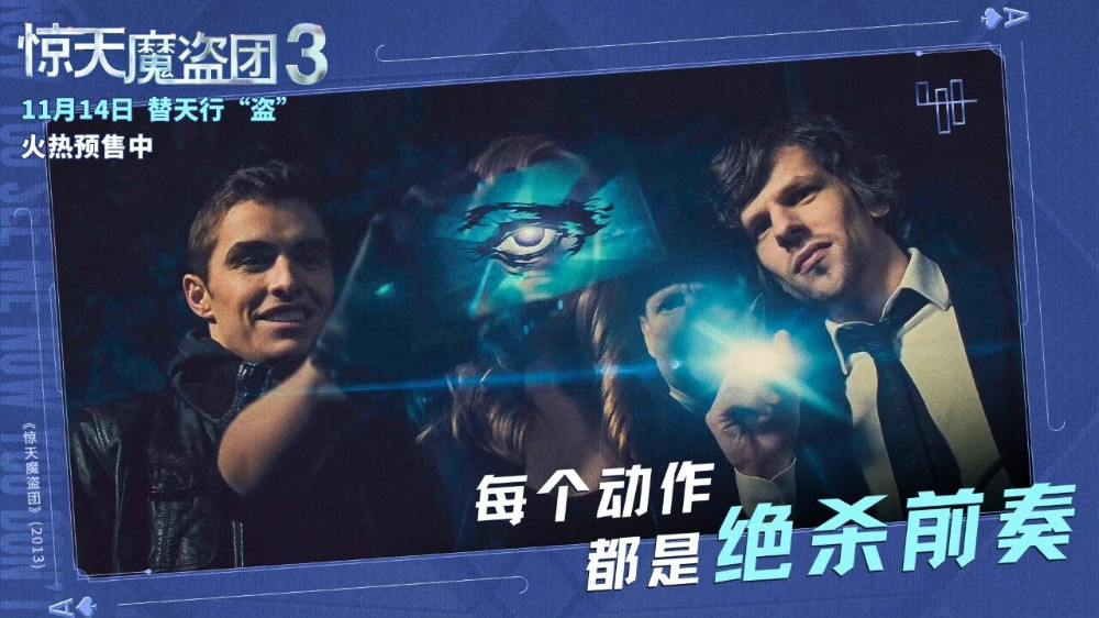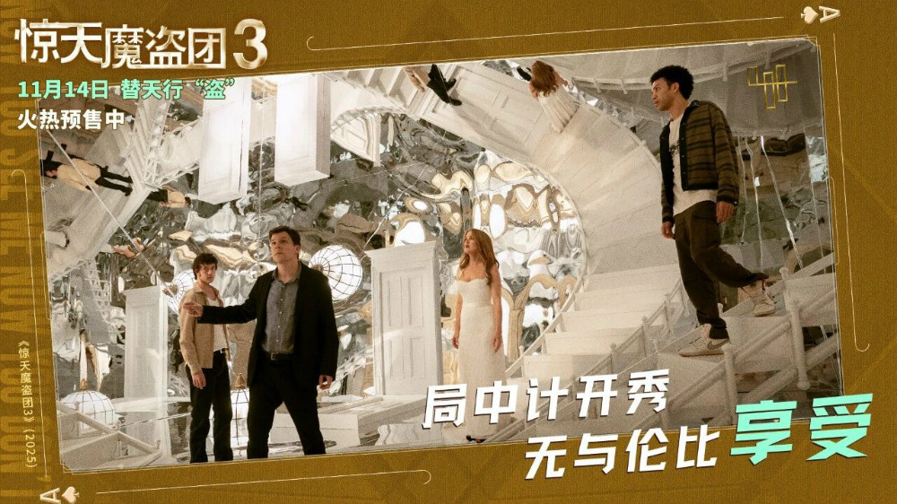 国+社区新媒体报道 魔术犯罪电影《惊天魔盗团3》定档11月14日全国上映。时隔十二年,“初代四骑士”再度集结,这场震撼回归的背后,正预示着一场惊天大案即将席卷而来。他们将直面“史上最贵钻石”的高难度盗窃挑战,为观众献上一场颠覆想象、爽感拉满的“骗术”狂欢!