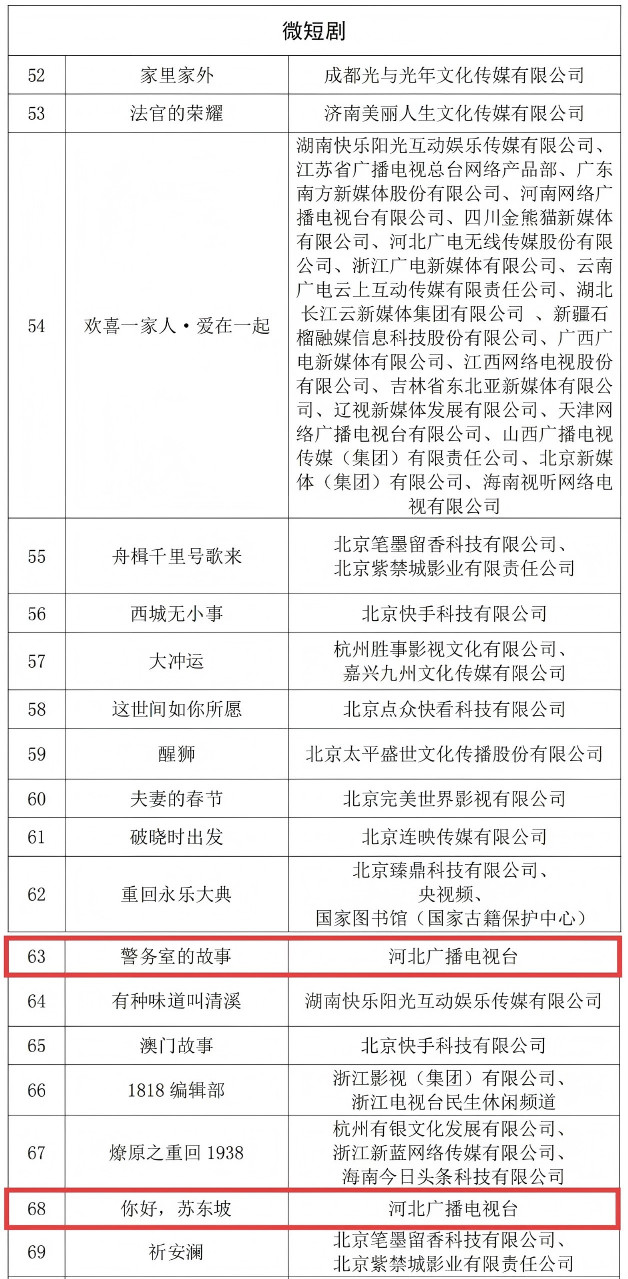 国+社区新媒体报道 11月18日,国家广播电视总局公布了《2025年“与时代同行”原创网络视听节目推选结果及组织展播活动的通知》。河北广播电视台的两部微短剧作品《警务室的故事》《你好,苏东坡》入围此次推选及展播活动。