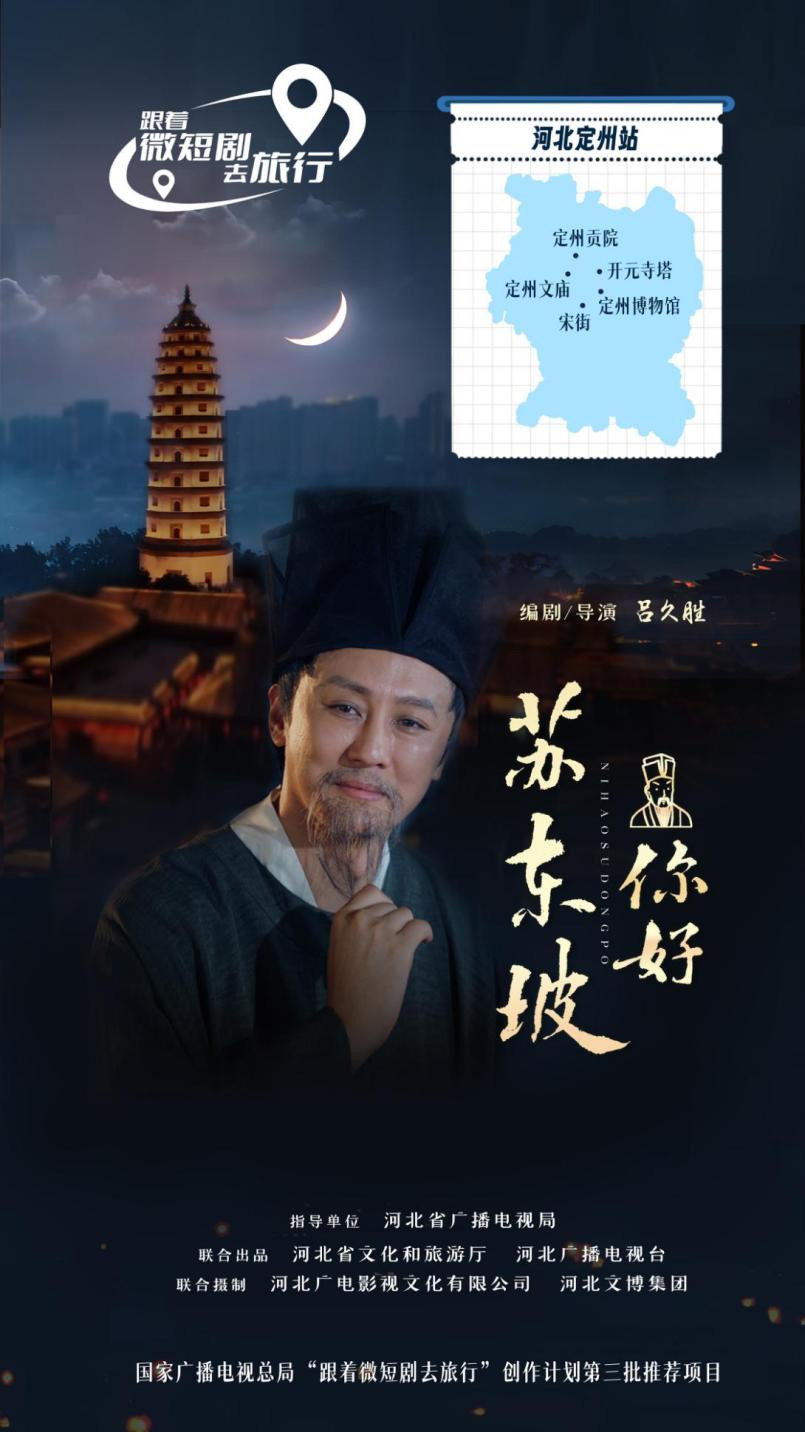 微短剧《你好,苏东坡》由河北省文化和旅游厅、河北广播电视台联合出品,河北广电影视文化有限公司、河北文博集团联合摄制,中央广播电视总台河北总站特别支持。该剧主要讲述了苏东坡意外穿越到2024年走州塔下并结识了当代高中生林佳,二人一起携手同游定州的故事。剧中融入了开元寺塔、文庙、贡院、东坡双槐、宋街、定州博物馆、走瓷、定州焖子等诸多定州元素,充分展现了定州作为“中华诗词之市”的历史底蕴、文化魅力以及风土人情。