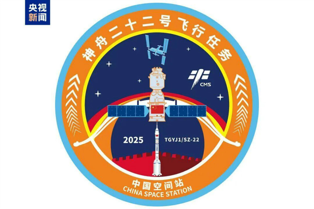 神舟二十二号今日飞天 2025年11月25日,我国将在酒泉卫星发射中心使用长征二号F遥二十二运载火箭发射神舟二十二号飞船。神舟二十一号航天员乘组在轨工作正常、状态良好。中国载人航天工程办公室发布神舟二十二号飞行任务标识,整体设计既延续中国航天标识的美学传承,又创新融入应急救援要素。标识以长城图案为基底,体现对航天员生命安全的庄严承诺;弓箭造型与长征二号F运载火箭、神舟飞船构成视觉主体,展现“蓄势待发”的力量感与“使命必达”的坚定信念;二十二支利箭环绕四周,精准呼应任务编号。
