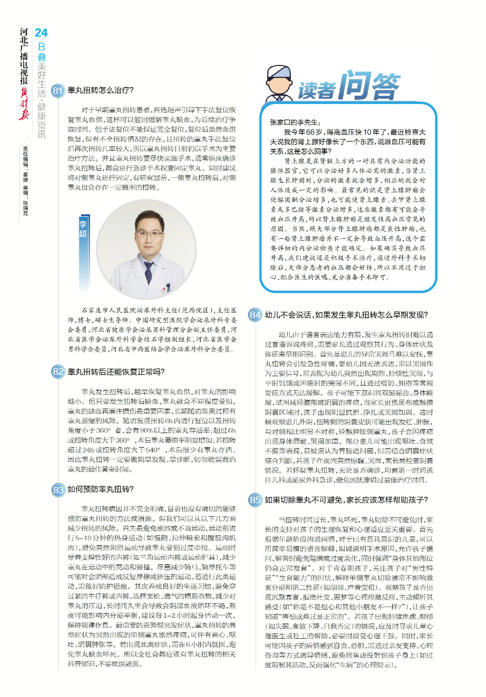 当扭转时间过长,睾丸坏死,睾丸切除不可避免时,家长的支持对孩子的生理恢复和心理适应至关重要。首先根据年龄阶段沟通病情,对于已有自我意识的儿童,可以用简单易懂的语言解释,坦诚说明手术原因,允许孩子提问,解答时避免隐瞒或过度美化,同时强调“身体其他部位仍会正常发育”。对于青春期孩子,关注孩子对“男性特征”“生育能力”的担忧,解释单侧睾丸切除通常不影响激素分泌和第二性征(如胡须、声音变粗)。观察孩子是否出现沉默寡言、拒绝社交、噩梦等心理应激反应,主动倾听其感受(如“你是不是担心和其他小朋友不一样?”),让孩子知道“害怕或难过是正常的”。若孩子出现持续焦虑、抑郁(如失眠、食欲下降、自我否定)的情况,应及时寻求儿童心理医生或社工的帮助,必要时接受心理干预。同时,家长可能因孩子的病情感到自责、恐惧,需通过亲友支持、心理咨询等方式疏导情绪,避免将焦虑投射到孩子身上(如过度限制其活动,反而强化“生病”的心理暗示)。