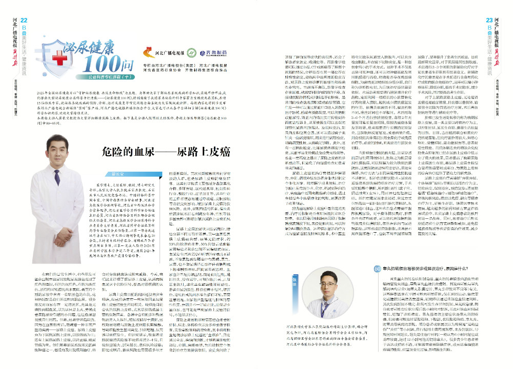 在我们的日常生活中,有些朋友可能会出现在排尿时发现尿液颜色变成了红色的情况,有的为深红色,有的为淡红色,还有的可能跟洗肉水类似,甚至有个别的尿液中含有一些暗黑色的血块,这种情况就是我们所说的肉眼血尿。很多朋友对血尿存在一定的误区,尤其是无痛性肉眼血尿,以为这只是上火、劳累或者尿路感染引起的小问题,往往选择忽视或自行用药。但是,这是非常危险的,因为在血尿的背后,隐藏着一种非常严重的疾病——尿路上皮癌。尿路上皮癌分为下尿路尿路上皮癌,以膀胱癌为主;还有上尿路尿路上皮癌,以肾盂癌、输尿管癌为主。他们都是泌尿系统常见的恶性肿瘤之一,若没有及时发现和治疗,将会对身体健康造成极大威胁。今天,我们就来详细了解尿路上皮癌,认清肉眼血尿这个危险信号,提高对该疾病的认知。