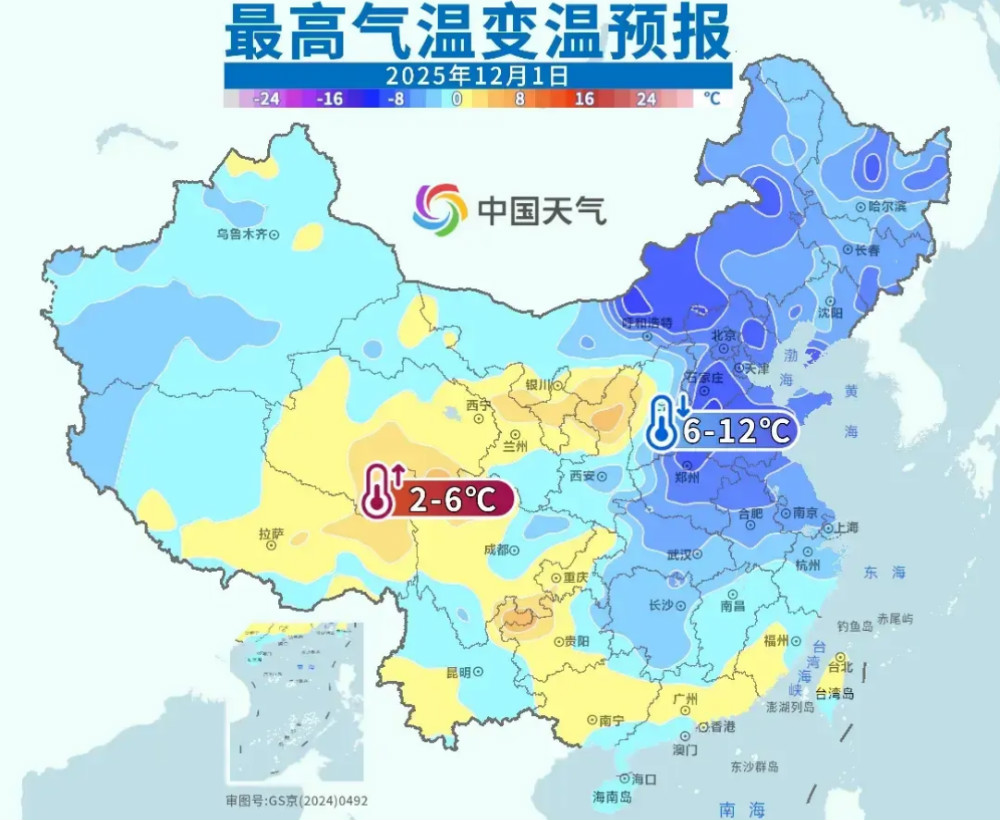 中央气象台预计,未来10天,有两次冷空气过程(11月29日-12月3日、12月4-6日)影响我国。其中11月29日-12月3日,冷空气将缓慢扩散南下影响中东部大部地区,从东北至江南的大部地区最高气温累计降幅在10℃以上。