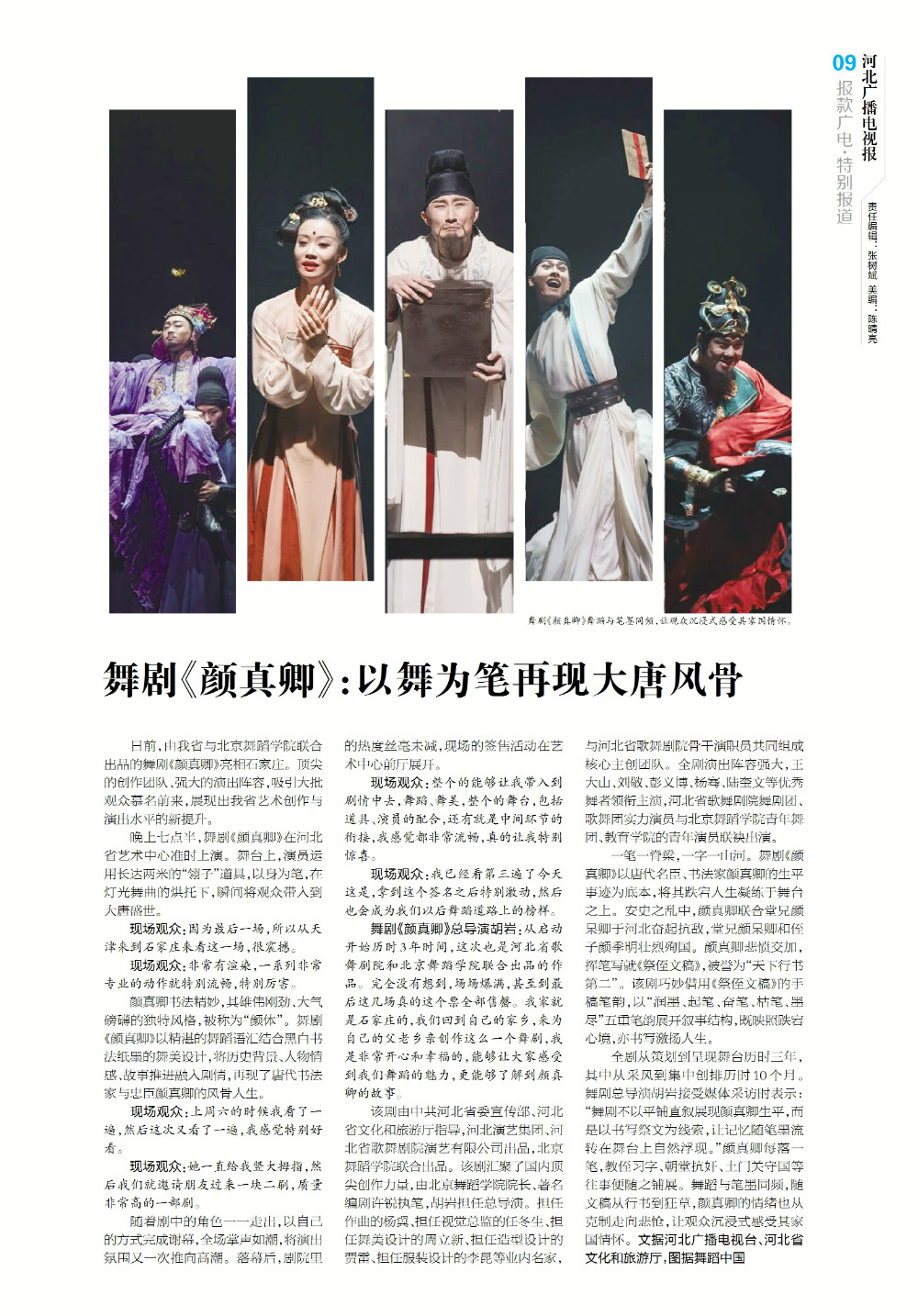 舞剧《颜真卿》总导演胡岩:从启动开始历时3年时间,这次也是河北省歌舞剧院和北京舞蹈学院联合出品的作品。完全没有想到,场场爆满,甚至到最后这几场真的这个票全部售罄。我家就是石家庄的,我们回到自己的家乡,来为自己的父老乡亲创作这么一个舞剧,我是非常开心和幸福的,能够让大家感受到我们舞蹈的魅力,更能够了解到了颜真卿的故事。