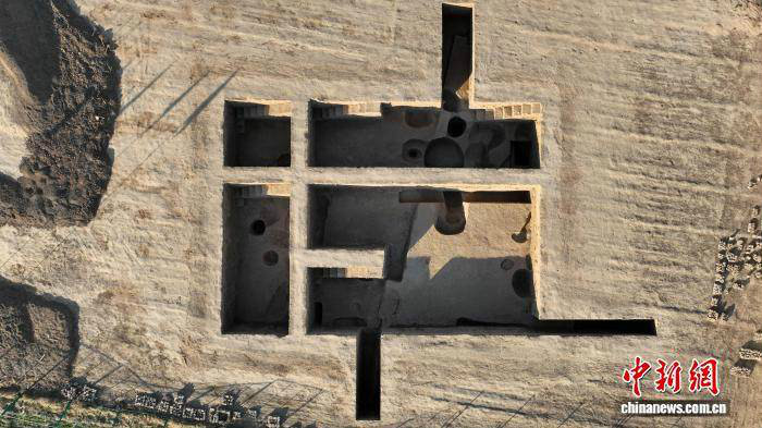12月2日,位于河北省邢台市隆尧县的柏人城遗址发掘现场。(无人机照片)王雪摄