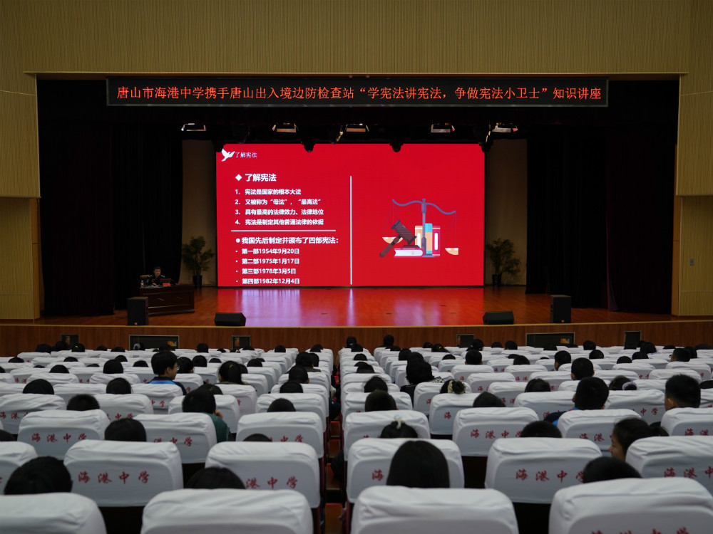国+社区新媒体报道(通讯员 张泽昊 王小语) “原来宪法和我们的生活这么近呀!这堂法治课太有意思了!”唐山海港开发区第六中学学生课后兴奋说道。12月3日,第十二个“国家宪法日”来临之际,唐山边检站聚焦驻地学校青少年法治教育需求,选派3名担任法制副校长的骨干民警走进任职学校,以“宪法伴我行 护航青春路”为主题开展宣传教育活动,为近千名师生送上生动实用的法治课。