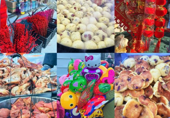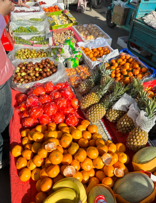 这里的水果价格实惠,西瓜、香蕉、樱桃等应有尽有。此外,从各色糕点零食、调料,到衣服鞋帽、锅碗瓢盆等日用百货,在这里都能一站购齐,充满了朴实的生活气息。