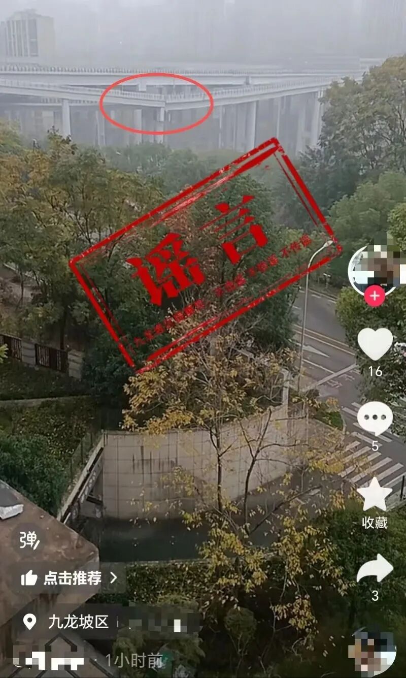 官方:拍摄角度产生视觉差异,不存在大桥沉降 近日,有网民发布视频称“重庆陈家坪那个蟠龙大桥新修的沉下去了”,引发关注。12月14日,南都N视频记者从重庆市九龙坡区获悉,该消息系谣言。据悉,经向相关部门核实,视频所摄画面实为陈庹路大桥改造后设置的掉头车道,因拍摄角度产生视觉差异,不存在大桥沉降情况,网传信息不实。