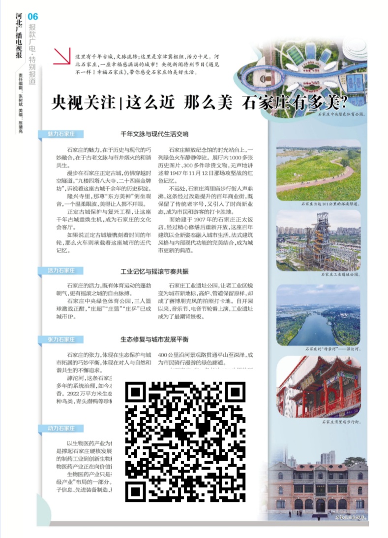 央视关注|这么近 那么美 石家庄有多美? 这里有千年古城,文脉流转;这里是京津冀枢纽,活力十足。河北石家庄,一座幸福感满满的城市!央视新闻特别节目《遇见不一样丨幸福石家庄》,带你感受石家庄的美好生活(识别图片上的二维码关注阅览)。
