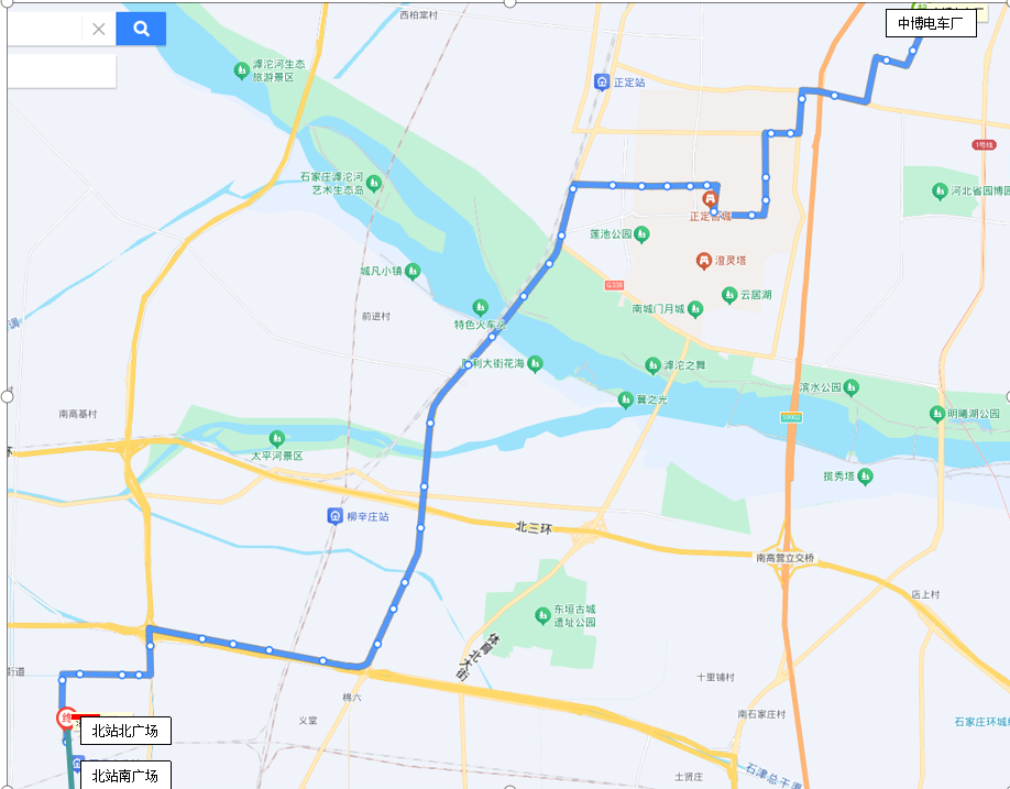 2. 调前路径:园博园大街、晨光东路、尉佗街、正无路、城东街、恒山路、旺泉南街、中山路、镇州南街、常山路、107国道、胜利北大街、北二环、中华北大街、联盟西路、泰华街、市庄路。