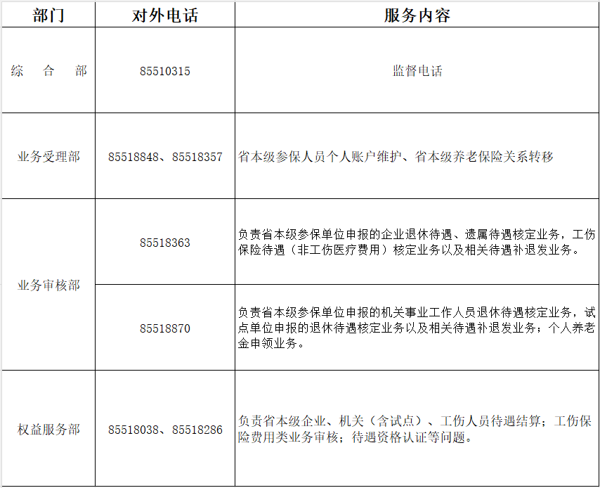 为进一步提升服务效能,畅通沟通渠道,切实解决群众反映的问题,推动社保经办服务规范化、透明化建设,现决定统一公布我单位相关服务热线。具体事项通知如下:
