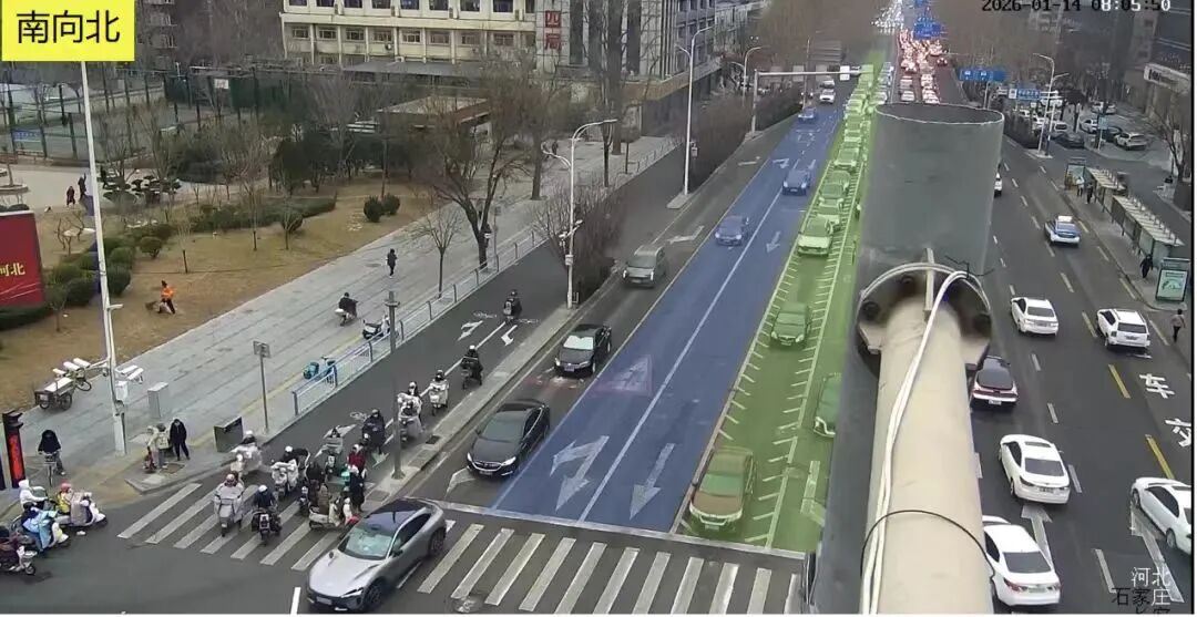 石家庄市中心一路口通行规则有变化 近日,针对石家庄和平路与平安大街交叉口交通流变化,石家庄市公安局交通管理局交通感知优化中心对路口信号配时进行调优。经视频巡查发现,该路口早晚高峰时段南口左转进入和平路高架车辆通行需求多,尤其是左转车辆排队约330米,影响直行车道,产生二次排队现象。南北方向交通流不均衡,南口交通量约是北口的1.3倍。针对此情况,交通感知优化中心在路口南北直行后增加了南单放相位。南口直行在此相位放行,有效缩短南口车辆排队长度至130米,南向北通行时间缩短16%。交警提示:非机动车辆左转时要在非机动车左转信号灯亮起时通行。