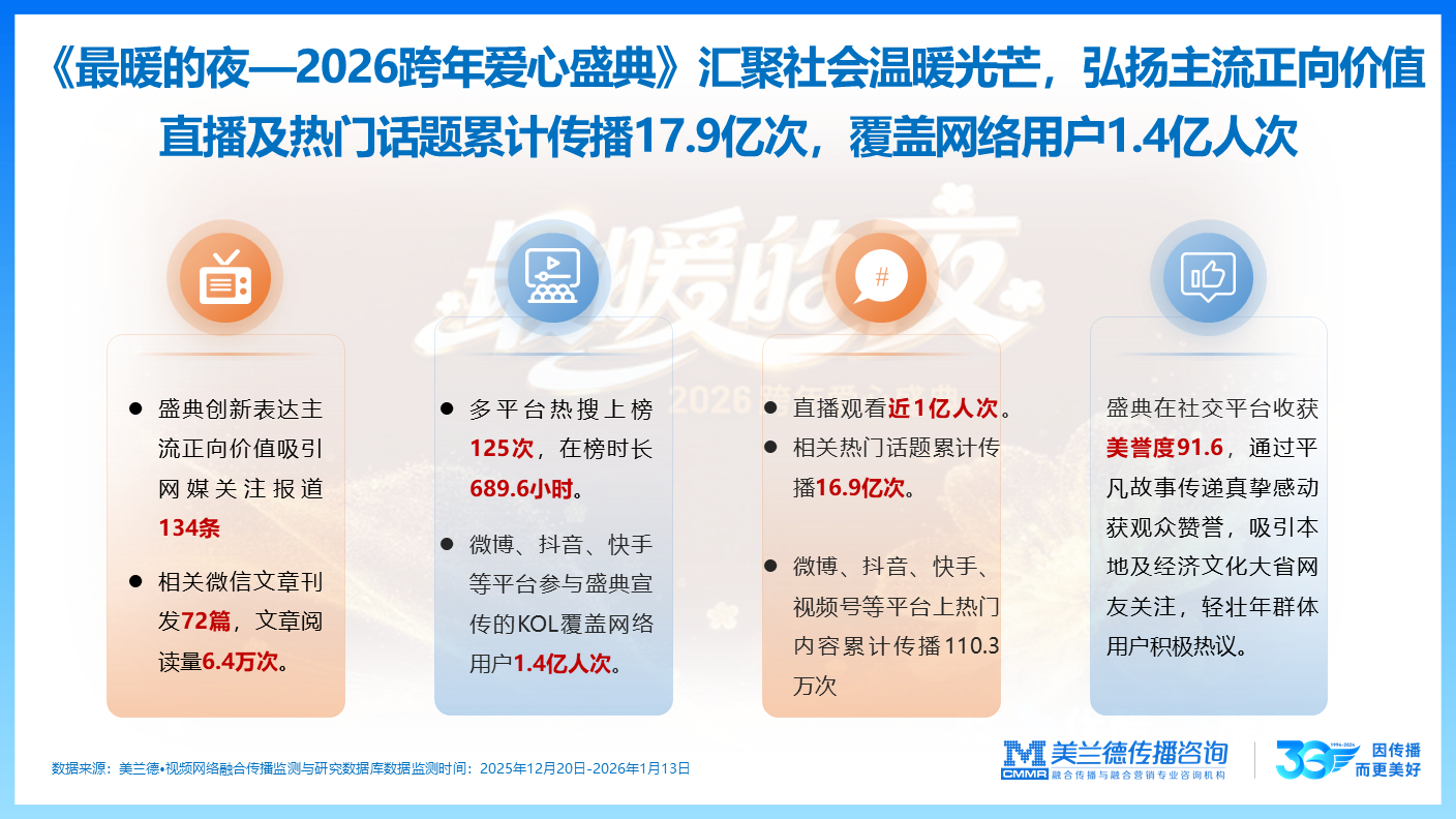 《最暖的夜—2026跨年爱心盛典》的传播实践,为“正能量如何获得大流量”这一时代课题提供了具有前瞻性的解决方案。