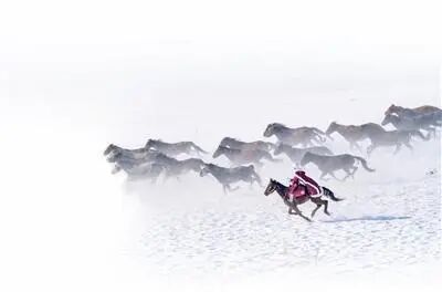 2020年12月31日,贺娇龙在昭苏县天马旅游文化园策马雪原。 新华社记者 白志强摄