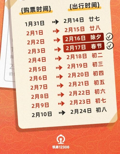 春节假期火车票今起开售 距离春节假期越来越近啦,今年春节假期及连休日是2月15日至2月23日,共计9天。今天(2月1日)可以购买春节假期首日(2月15日)的火车票,定好闹钟,准时锁定。
