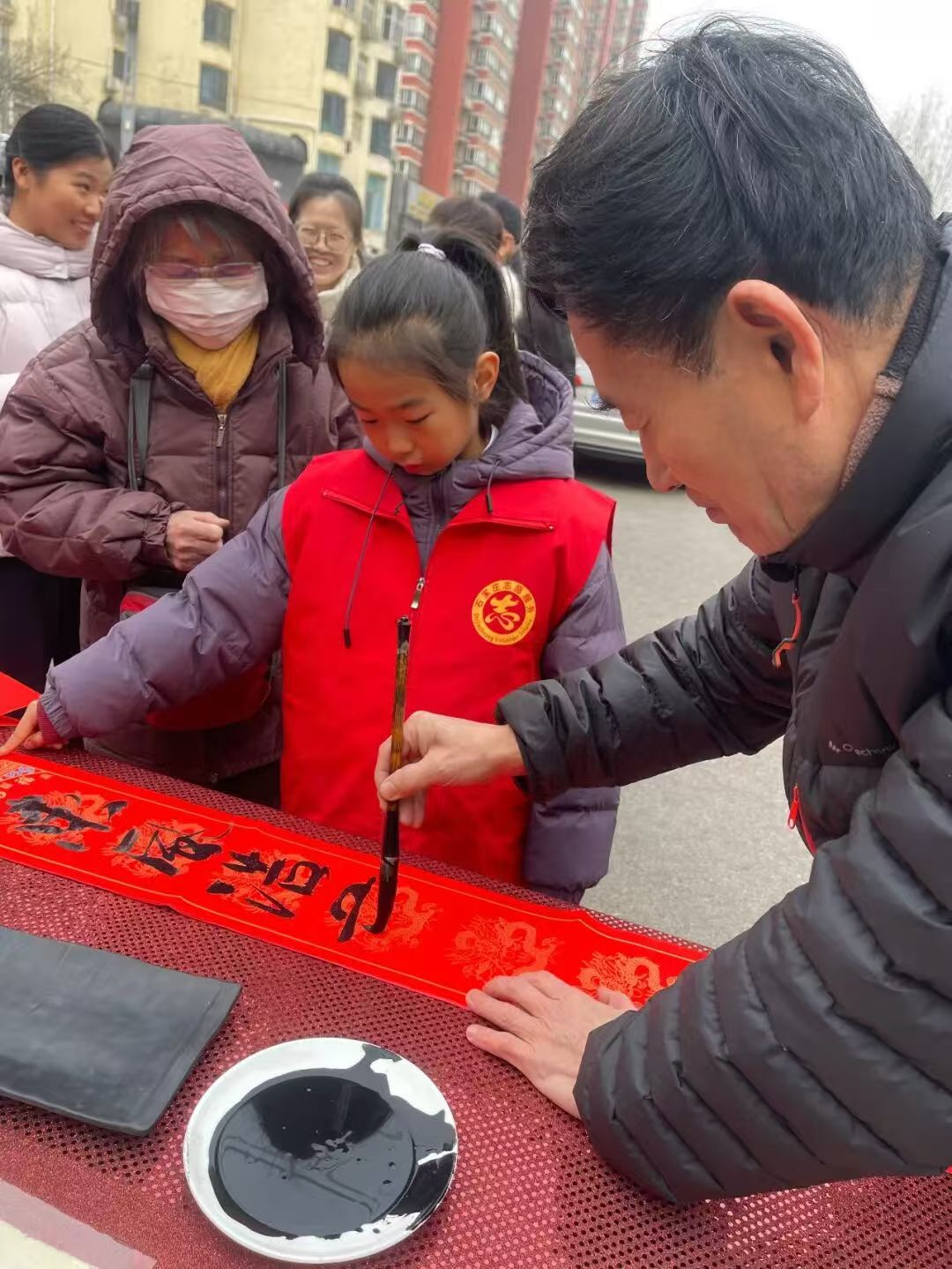 国+社区新媒体报道(河北广电报记者 何静/通讯员 刘意)1月30日,石家庄绿地中山里文化广场翰墨飘香、暖意融融,石家庄一家人志愿者团队在此举办“送春联、送祝福”迎新春公益活动,为周边居民送上诚挚新春祝福。此次活动在石家庄市桥西区委社会工作部、石家庄市志愿服务联合会指导下顺利开展,现场喜庆祥和,吸引了众多市民参与。