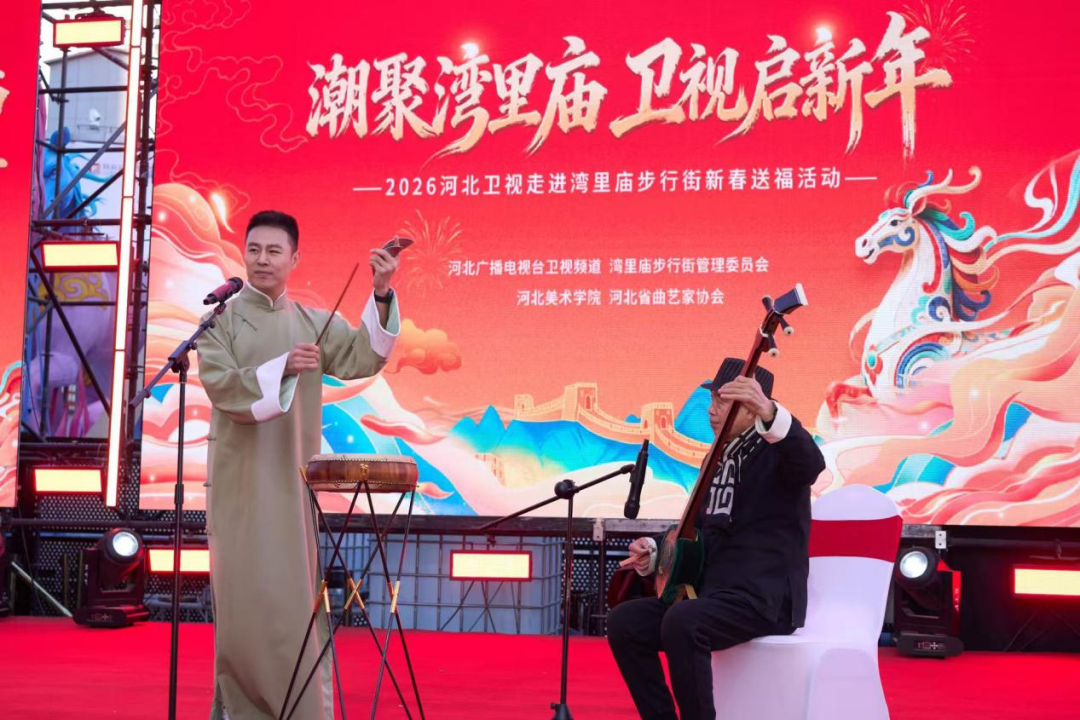 国+社区新媒体报道 岁序更迭,辞旧迎新。近日,河北卫视携手石家庄湾里庙步行街,并联动河北美术学院、河北省曲艺家协会、中国书法家协会,共同呈现了一场盛大而温暖的新春送福活动,将传统的年味、深情的祝福与鲜活的城市脉搏紧密相连。为期两天的“潮聚湾里庙·卫视启新年”活动,超两万人次参与,这不仅是一场视听盛宴,更是一次深植文化根脉的心灵相聚。
