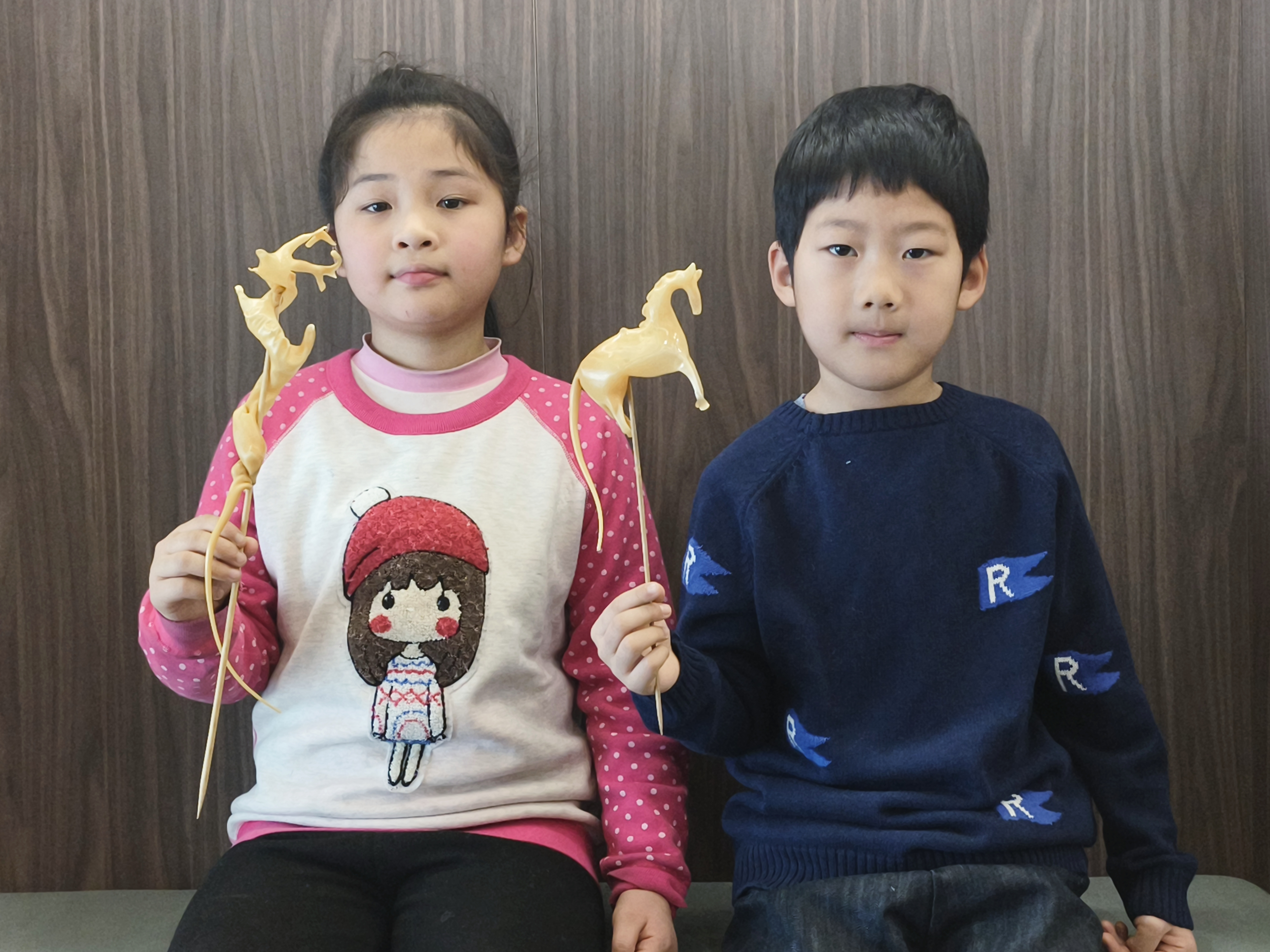 “糖人老师的嘴,怎么这么神奇呢?好像魔术师,我也想试试。”小读者们按捺不住内心的激动,跃跃欲试。在老师的指导下,大家纷纷开始“运功发力”,轻轻吹气,让糖浆逐渐膨胀、定型,插在竹签上,骏马、老鼠、小兔子……惟妙惟肖的十二生肖在老师灵巧的双手和孩子们的吹气中逐个完成,大家开心地体验吹糖人的乐趣。